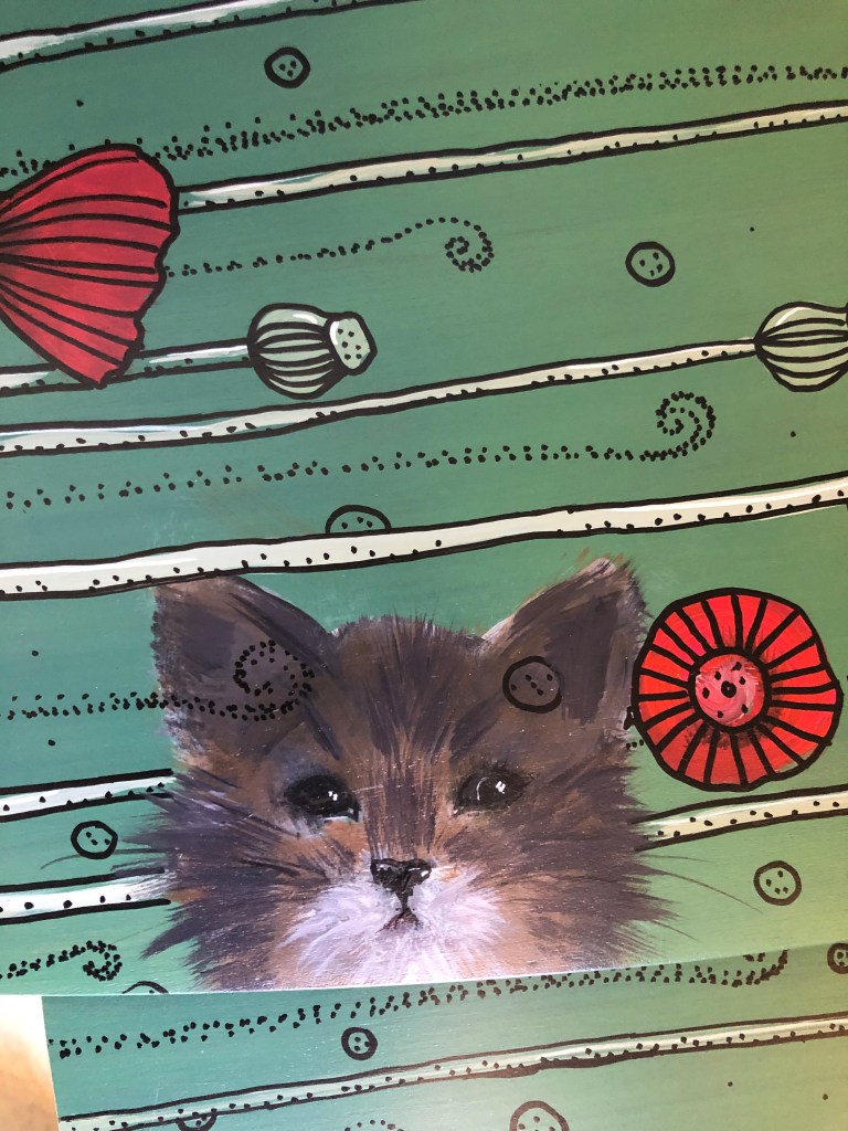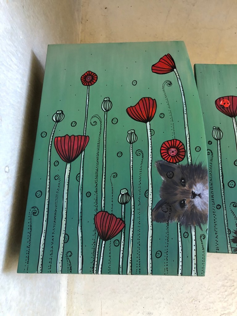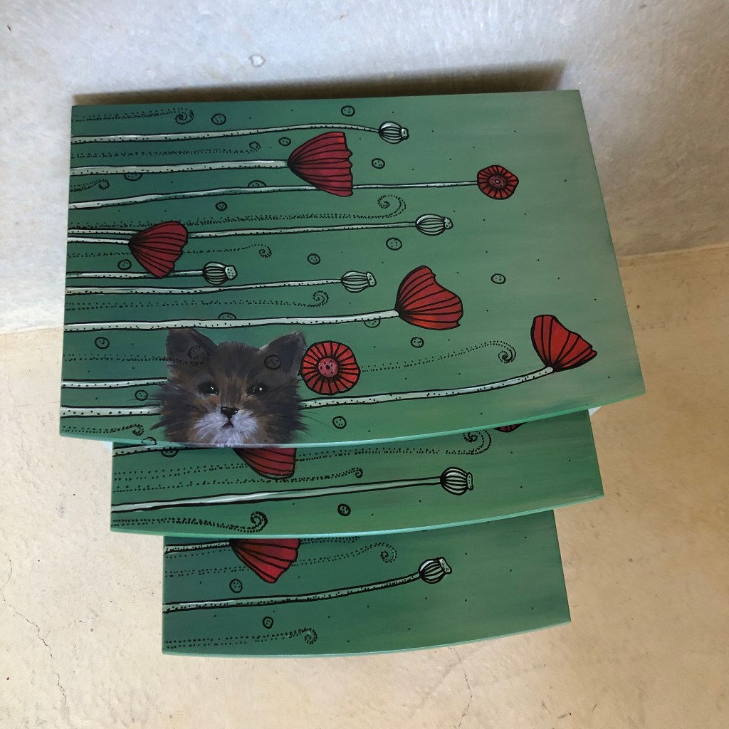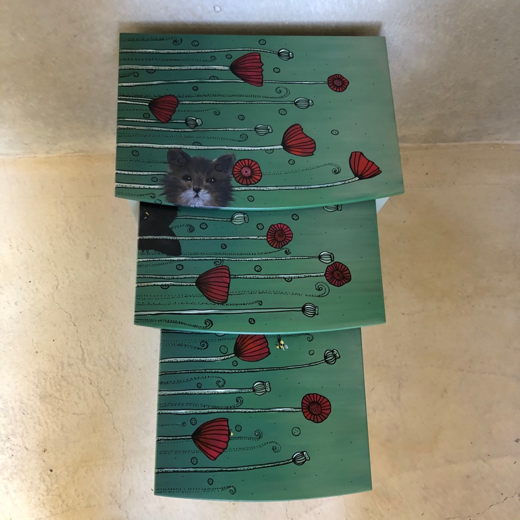 This nest of tables Tells a whole fable Of cats of black with golden eyes And a grey fluffy one with eyes so wise And lady bugs and busy bees And fields of poppies to appease Paulina gave us this special list And not a single thing was missed ![]()