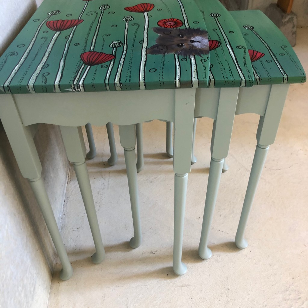 This freehand illustrated Nest of tables was another customised set. We have another Nest of tables available for re-designing.