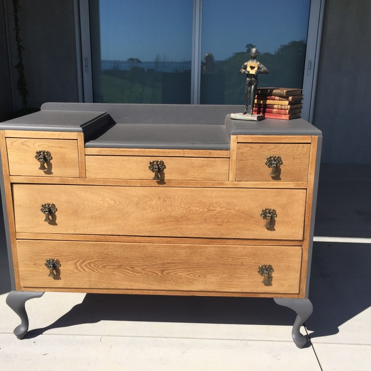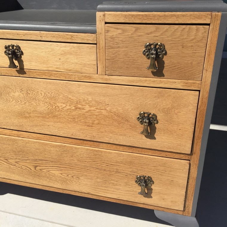 ‚Devine’ in any sense! The Beautiful soft slate colour complements the grain of this gorgeous oak. Painstakingly striped back to the bare wood and waxed for protection. The body is handpainted in slate grey – a match made in heaven.