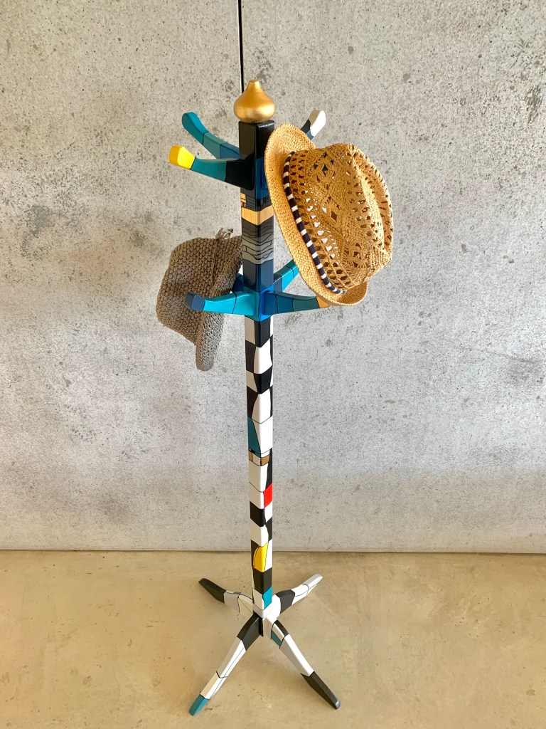 We designed this tired hat / coat stand for a lovely customer. It was a typical work in progress project. We were not sure about the design concept, but after a few days thinking about this project, it was clear, this hat stand needs to be homage to Hundertwasser (our customer is of course living in the Whangarei area, close to the Hundertwasser Museum…..)