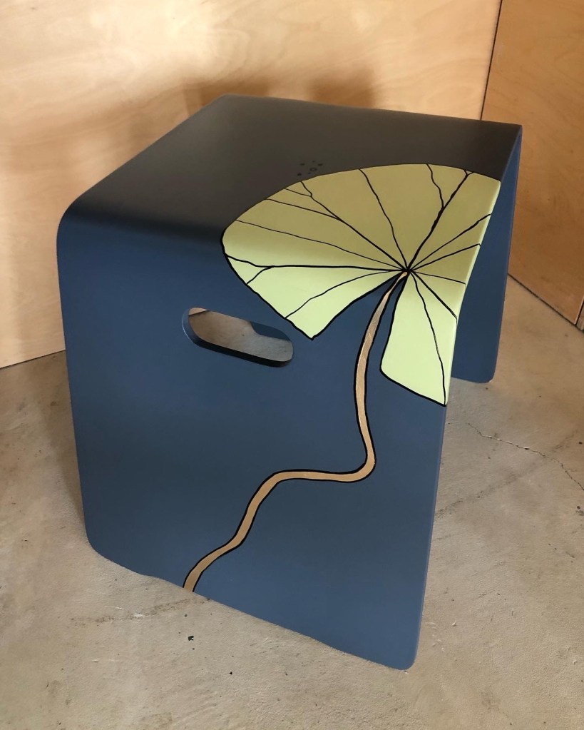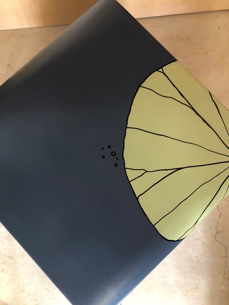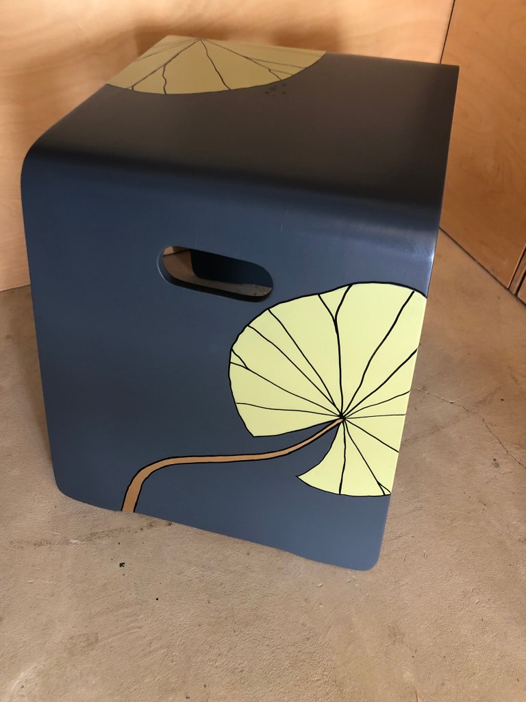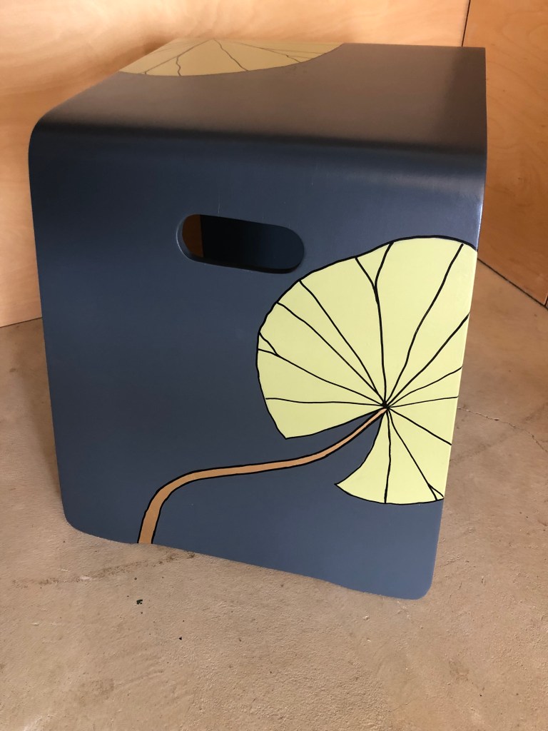 We finished this gorgeous sidetable, stool or even bedside table in a beautiful Lily Pad Leaf design. The table is painted in Resene Double Foundry, its in excellent condition, there is just one available.