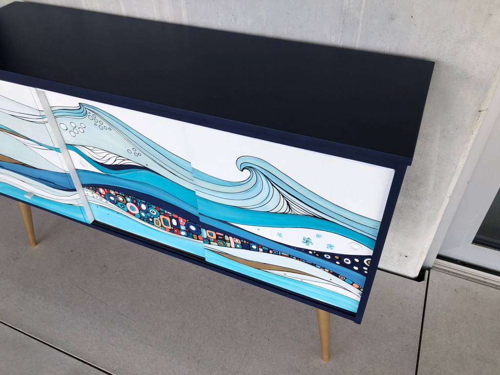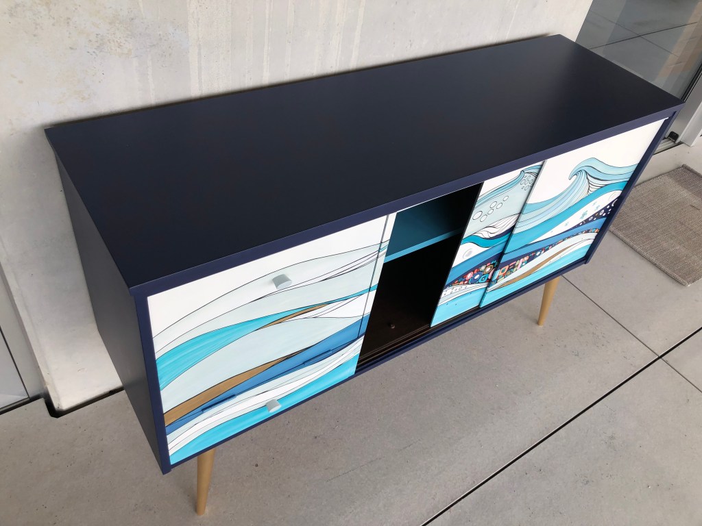 This beautiful midcentury sideboard was a customised piece. The length was about 1.30m and in this size the sideboard was $1.600. If you are interested in a design like this, we can source the right piece for you to re-design it for your needs. Get in touch if you are interested.